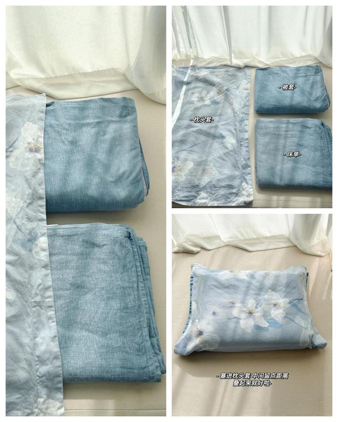 找的时候拉出来就是一整套,还巨省空间,看了老妈的收纳智慧,我才懂枕头套就是四件套自带的收纳神器。