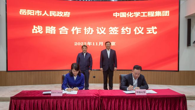 2022年11月10日,中国化学与岳阳市签署战略合作协议。根据协议,双方将在科技创新、城市基础设施建设、打造高端化工新材料产业等领域开展合作,实现互利共赢,共同发展。