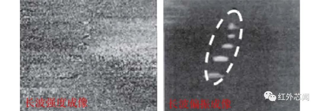 由于海面油的温度与水温相差极小,区分油水的温差对传统的热成像仪的灵敏度要求极高。偏振成像利用油与水的偏振特性差异,意大利那不勒斯帕泰诺佩大学Nunziata教授团队开展了海面漏油检测,图19分别给出了偏振成像与传统热成像的对比,偏振成像对比度提升明显。另外,中国地质大学陈启浩教授团队、中国石油大学宋冬梅教授团队也分别进行了海面漏油的偏振成像检测实验研究。