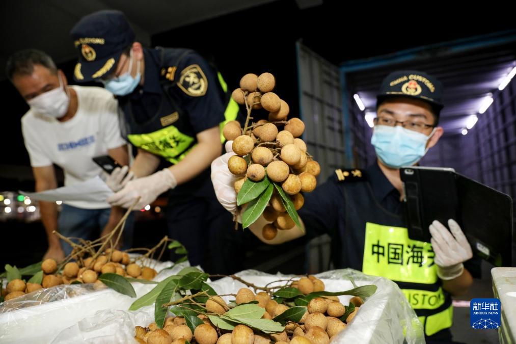 5月24日,拱北海关所属闸口海关关员对供澳高州荔枝进行查验。新华社发(朱伟俊 摄)