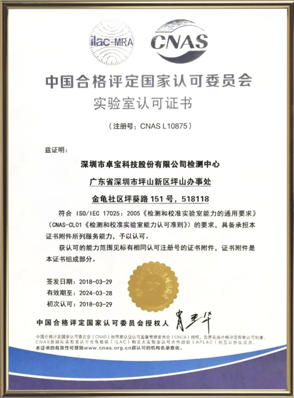 卓宝科技技术中心位于惠州,曾获评“广东省建筑新材料工程技术研究中心”,并通过国家级CNAS资格认证。